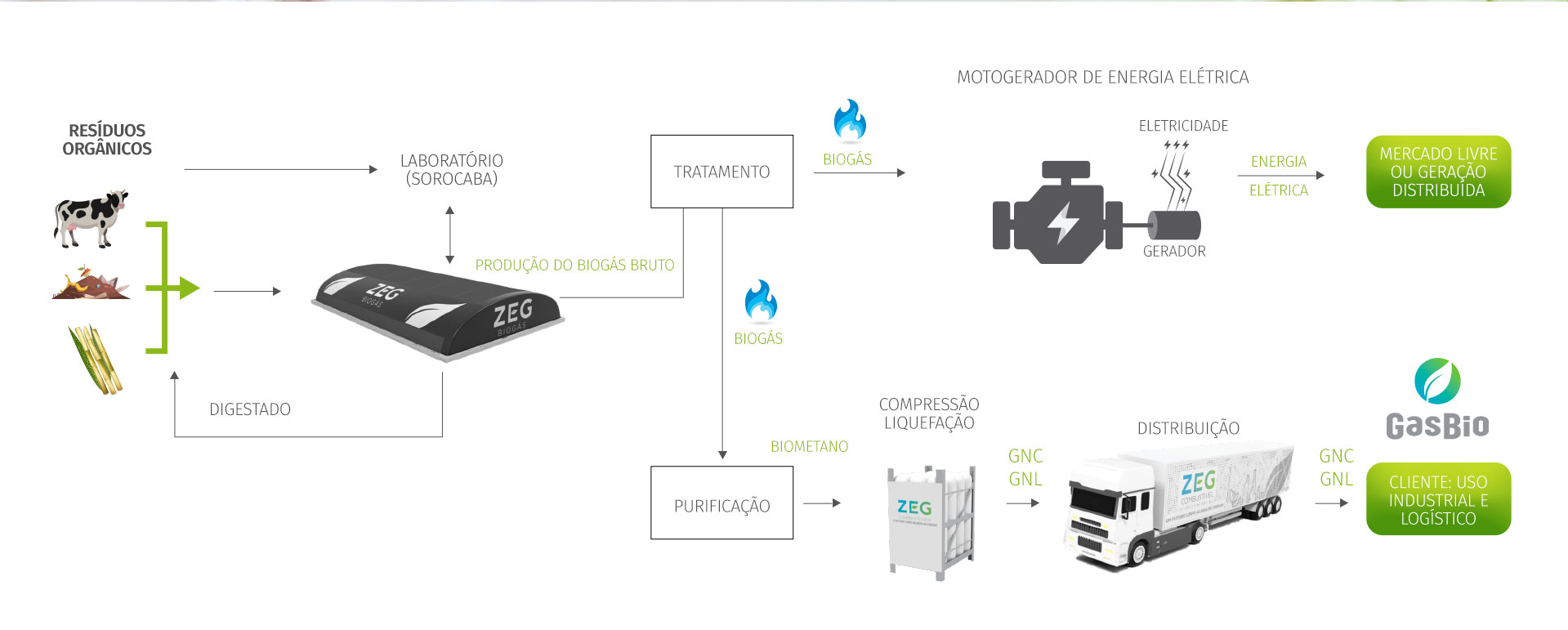 A ZEG BIOGÁS tem como propósito ser referência na produção e comercialização de biogás e biometano, fornecendo serviços técnicos para quem deseja utilizar essas fontes para seus diversos fins, que vão da geração de energia elétrica até seu uso como insumo na indústria.
