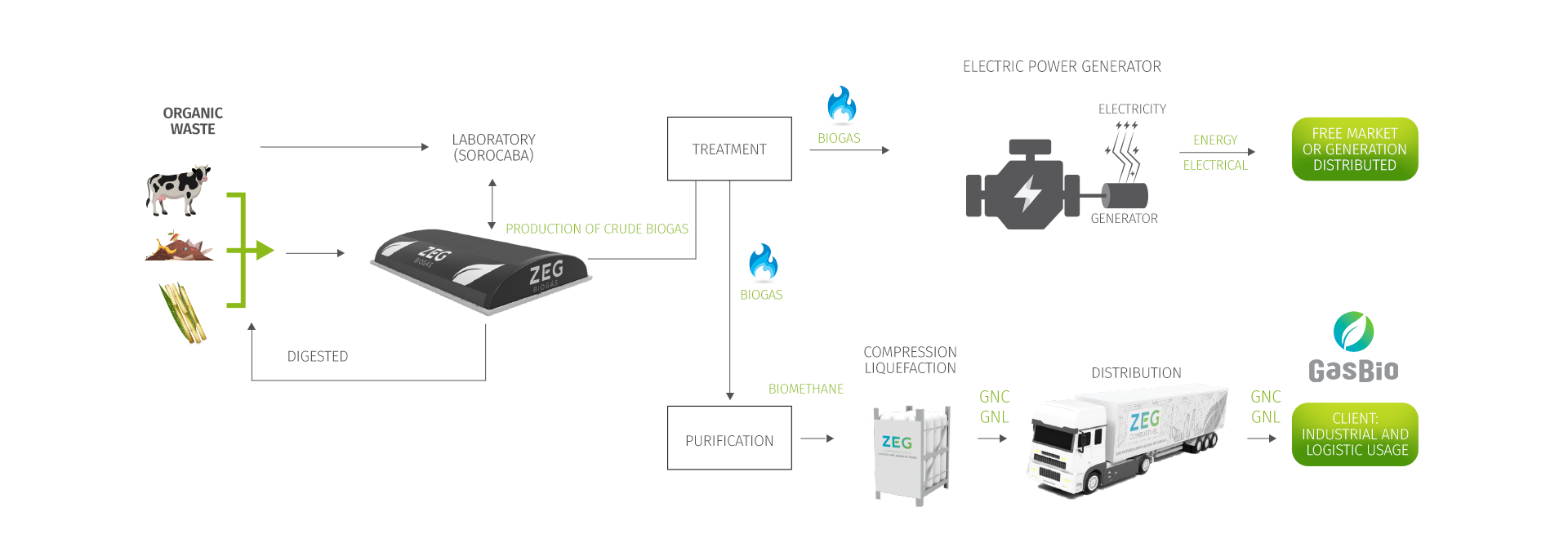 ZEG BIOGÁS is already the largest Biomethane producer of the São Paulo state and has the goal of being the benchmark in production and trading of biogas and biomethane in Brasil, being able to partner and prove technical expertise to those who want to transform waste into different froms of energy, ranging from generation of electric power to biofuels.